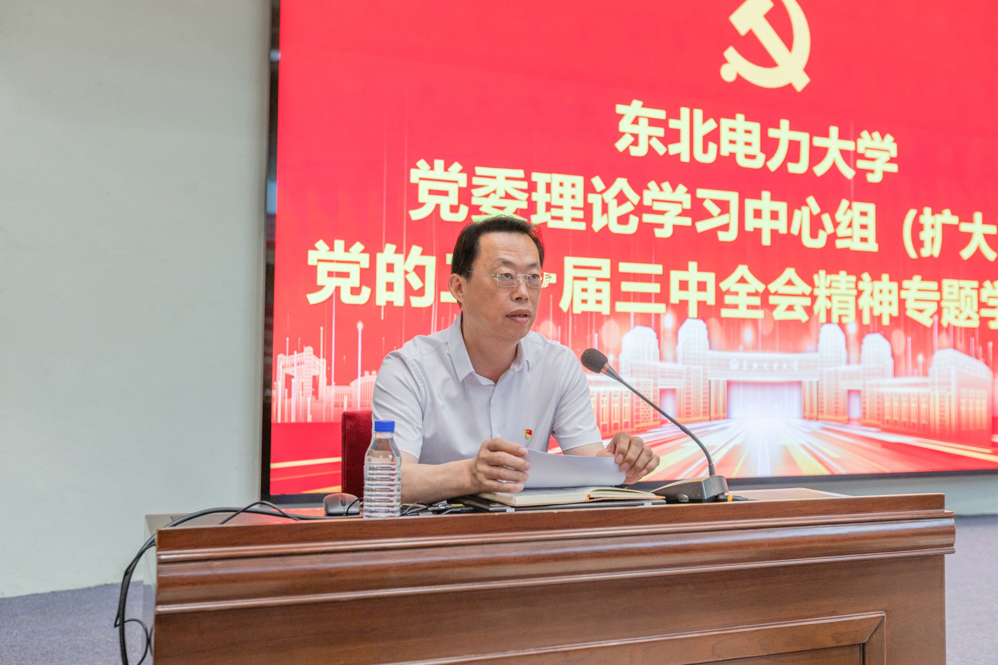 张静辉强调,学习宣传贯彻好党的二十届三中全会精神是当前和今后一个时期全校的一项重大政治任务。全校上下要深刻领会全会精神,切实落实好学习宣传贯彻工作。他要求,全校师生要切实加强组织领导,把握正确政治方向,按照学校统一部署和相关文件要求,抓紧抓好落实,迅速在全校兴起学习宣传贯彻全会精神的热潮。要在全校范围内开展对象化、分众化、互动化宣讲活动,增强实效性,实现全覆盖。要深入了解党情国情校情,结合《决定》充分认识新时代新征程深化教育综合改革的重大意义,统筹推进教育科技人才体制机制一体改革,将全会精神与学校快速高质量发展相结合,前瞻性开展“十五五”发展规划,以钉钉子精神抓好“十四五”发展规划的落实,把学习成果转化为特色高水平应用研究型大学建设的强大动力,为吉林全面振兴贡献东电力量。