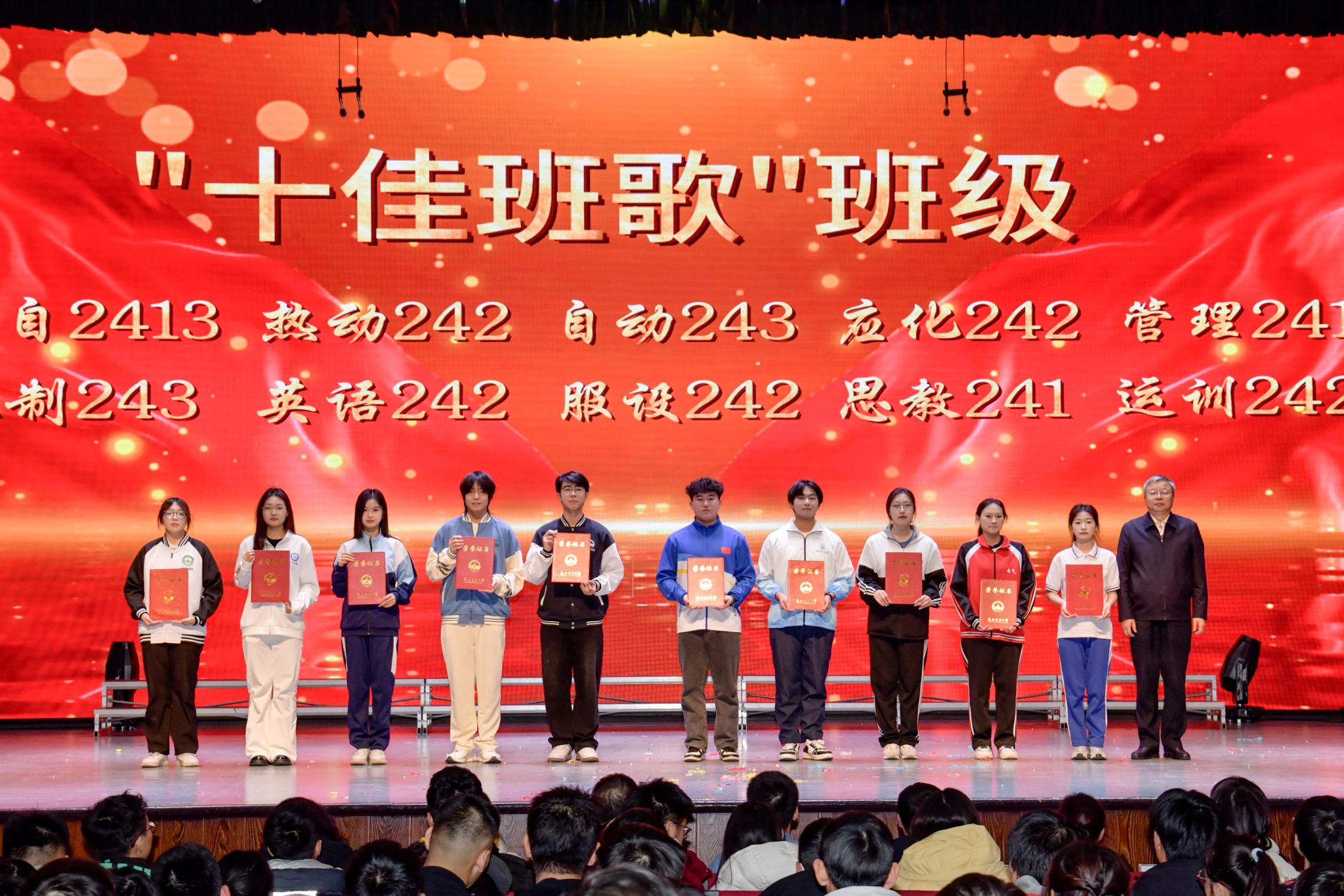最终,热动242班、服设242班获得展演一等奖,服设242班获得最具人气奖;能源与动力工程学院热动242班等10个班级被评为“十佳班徽”班级;经济管理学院管理241班等10个班级被评为“十佳班歌”班级;电气工程学院电自2413班等10个班级被评为“十佳班风”建设班级;电气工程学院、能源与动力工程学院、经济管理学院、艺术学院被评为优秀组织单位。