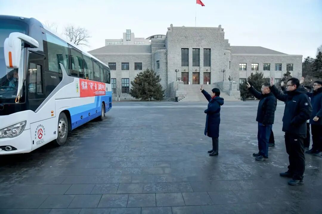 12月20日6:30,学校党委副书记詹丽萍亲临发车点,为考研学子加油打气、暖心送行。